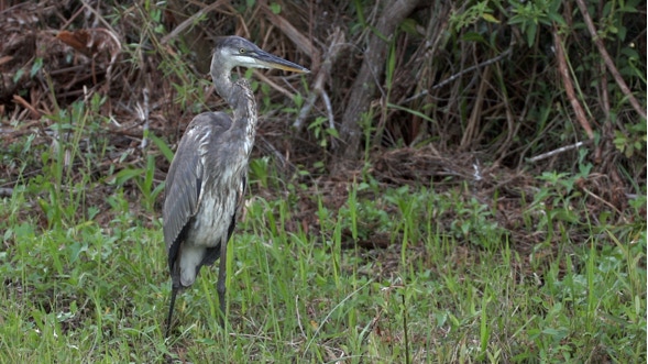The Great Blue Heron, four feet tall and seven pounds dripping wet, had been attacked by an alligator.