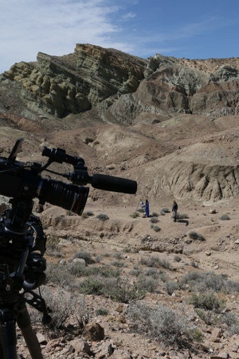 The Middle Eastern scene in “Alien Prophecy” was filmed in Barstow, California. When we arrived at our location actress Sarah Attrill, who plays “Esmeralda,” said it reminded her of the ancient archeological site of Petra in Jordan (which she has visited). Temples appeared to be buried under the natural earth hills.
